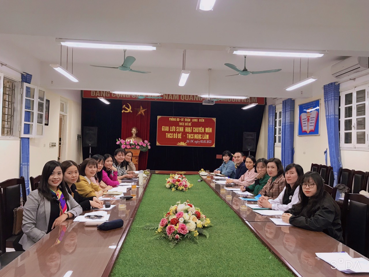 Thực hiện Kế hoạch số 185/KH-THCS Bồ Đề ngày 29/09/2022 về việc Giao lưu, học tập kinh nghiệm với trường THCS Ngọc Lâm năm học 2022-2023. Thực hiện phong trào “Nhà trường cùng chung tay phát triển - Thầy cô cùng sẻ chia trách nhiệm” giai đoạn 2022 - 2025 của Ngành GD&ĐT quận Long Biên, nhằm nâng cao chất lượng thi tuyển sinh vào lớp 10 THPT, tạo điều kiện để giáo viên các nhà trường được trao đổi, học hỏi kinh nghiệm giảng dạy ôn thi vào lớp 10, sáng 30/03/2023, trường THCS Bồ Đề và trường THCS Long Biên đã có buổi giao lưu, chia sẻ chuyên môn đầy ý nghĩa ở bộ môn Toán và Tiếng Anh. Đến dự buổi giao lưu, chia sẻ có đ/c Lê Mạnh Hùng - Đại diện chuyên viên Phòng GD& ĐT quận Long Biên. Cùng dự có đại diện Ban Giám hiệu, lãnh đạo tổ nhóm chuyên môn và đại diện giáo viên của nhóm Toán, nhóm Tiếng Anh hai trường THCS Bồ Đề và THCS Ngọc Lâm.