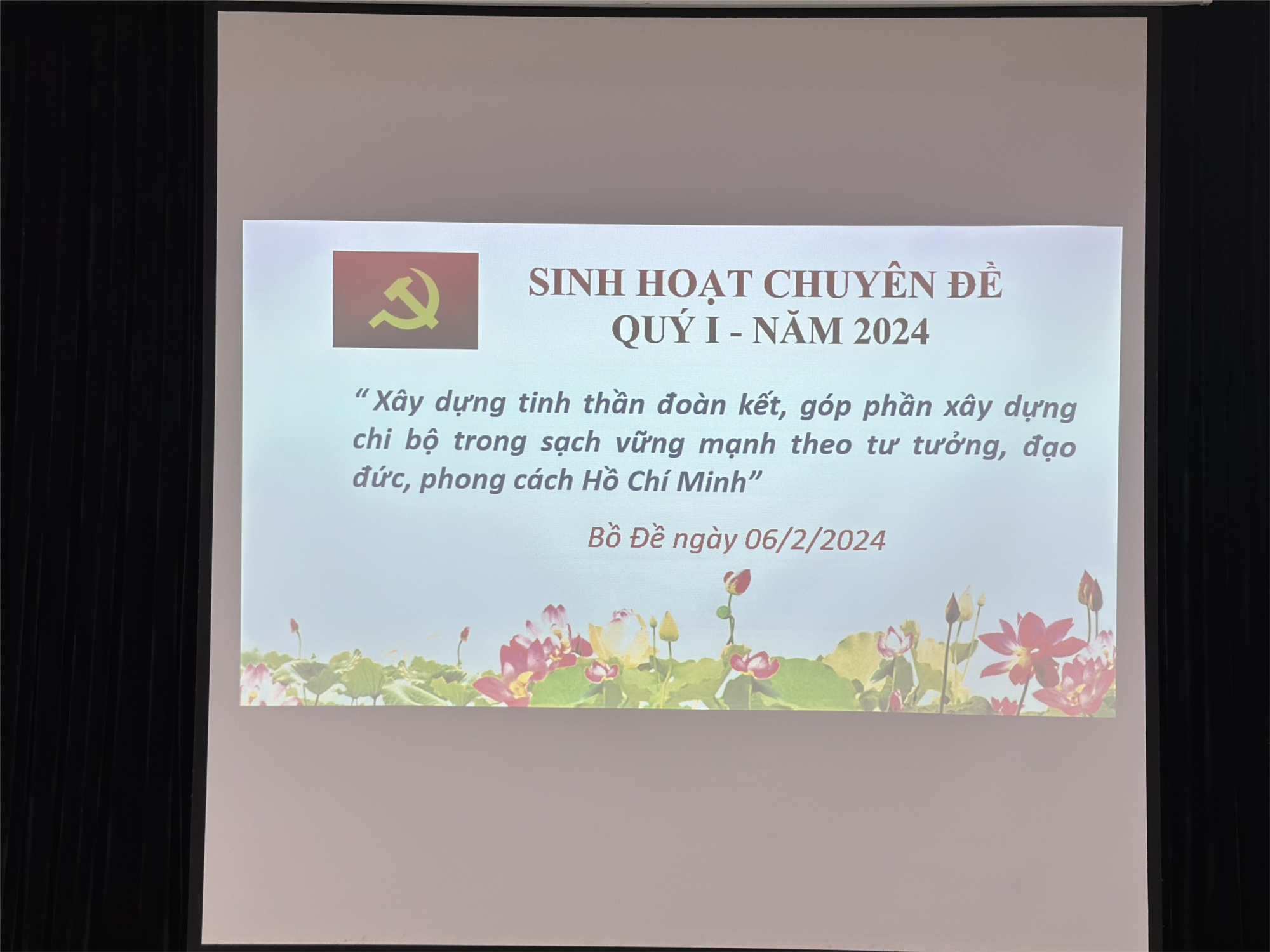 "Xây dựng tinh thần đoàn kết, góp phần xây dựng chi bộ trong sạch vững mạnh theo tư tưởng, đạo đức, phong cách Hồ Chí Minh".