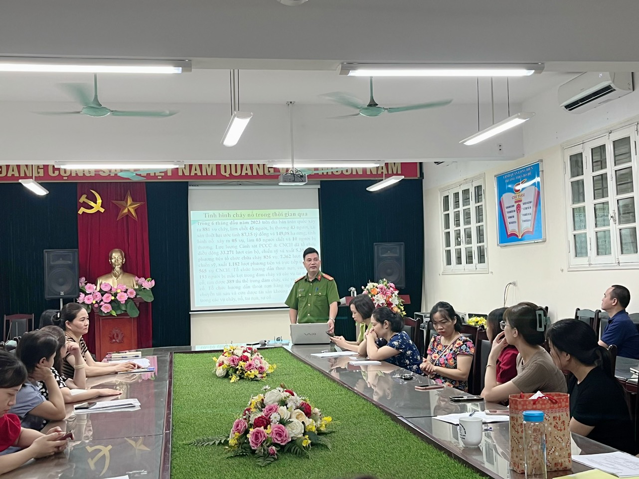 1. Phần lý thuyết: do đồng chí Đại úy Hoàng Văn Hải – CB đội CS PCCC và CNCH quận Long Biên làm báo cáo viên.