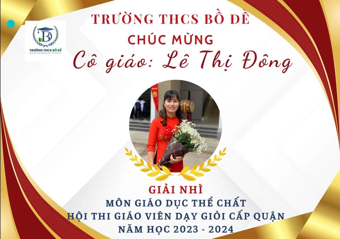 Kết quả vòng thi cấp Quận của Hội thi GVG năm học 2023-2024 trường THCS Bồ Đề có 06 thầy cô giáo tham dự và đều được công nhận là GVG cấp Quận. Đặc biệt có cô giáo Lê Thị Đông đạt giải Nhì môn GDTC trong hội thi.