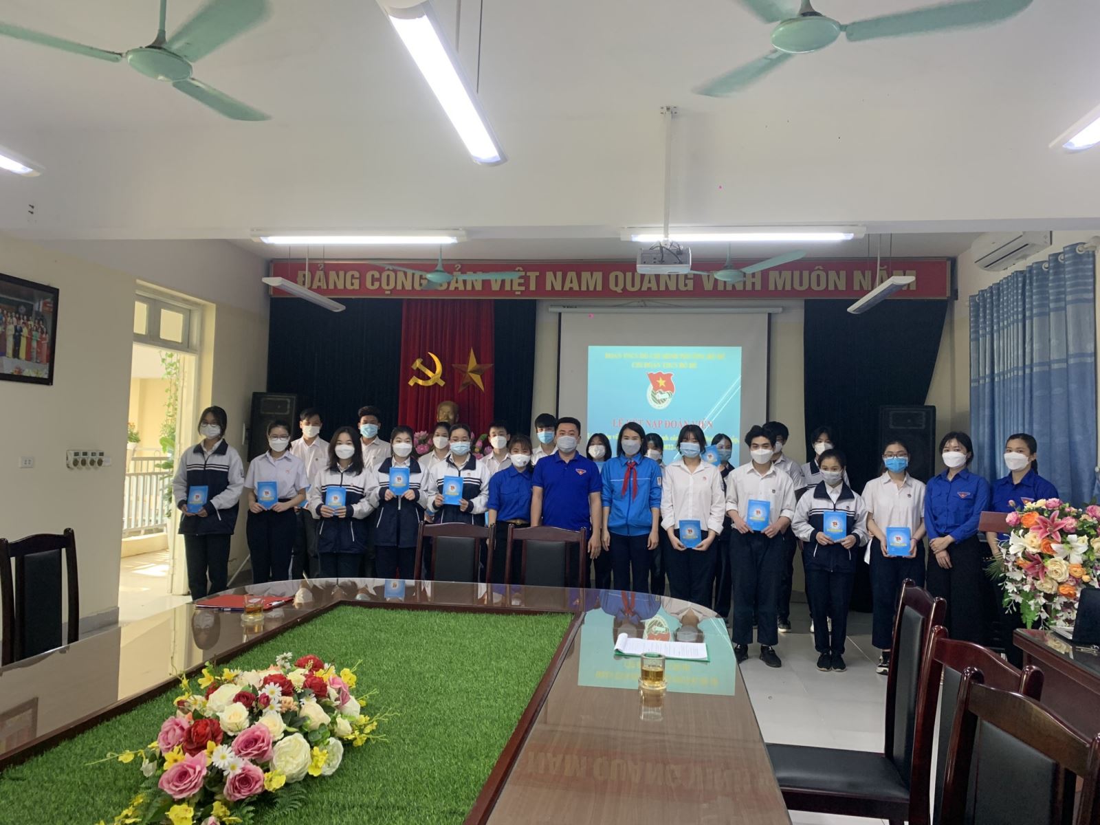 Trong không khí thi đua sôi nổi của tuổi trẻ cả nước , được sự đồng ý của BCH Đoàn phường Bồ Đề Ban Giám hiệu nhà trường,chiều ngày 26/3 vừa qua, trường THCS Bồ Đề đã tổ chức Lễ Kết nạp Đoàn viên mới cho những học sinh ưu tú của khối 9 năm học 2021-2022
