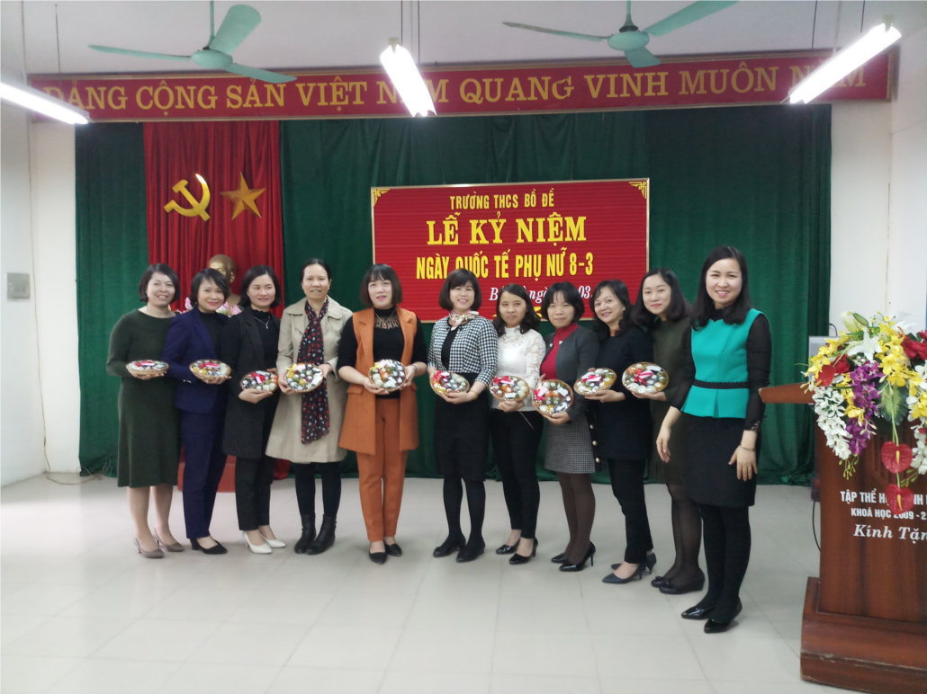Nhằm ôn lại truyền thống của ngày Quốc tế Phụ nữ 8/3 và cuộc khởi nghĩa Hai Bà Trưng, chiều ngày 8/3/2018 Công đoàn trường THCS Bồ Đề tổ chức Lễ kỷ niệm ngày Quốc tế phụ nữ 8/3, tham dự buổi lễ có mặt đông đủ của toàn thể CB-GV-NV nhà trường.