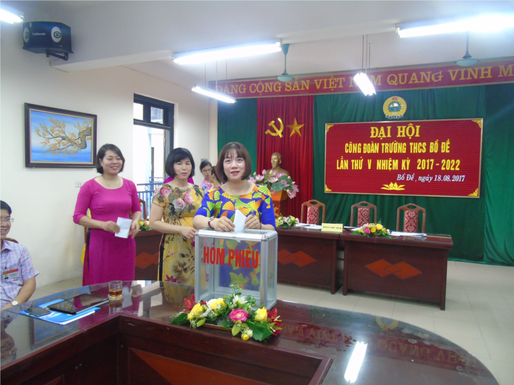 Tiếp theo chương trình, toàn thể Đại hội đã tiến hành bầu cử BCH Công đoàn nhiệm kỳ mới 2017-2022. Sau một thời gian làm việc tập trung, dân chủ, Đại hội đã nhất trí bầu ra BCH nhiệm kỳ mới 2017-2022 gồm 3 đồng chí: Đ/c Nguyễn Thị Thu Dung, đ/c Nguyễn Thị Thu Hương, đ/c Nguyễn Thị Thủy.