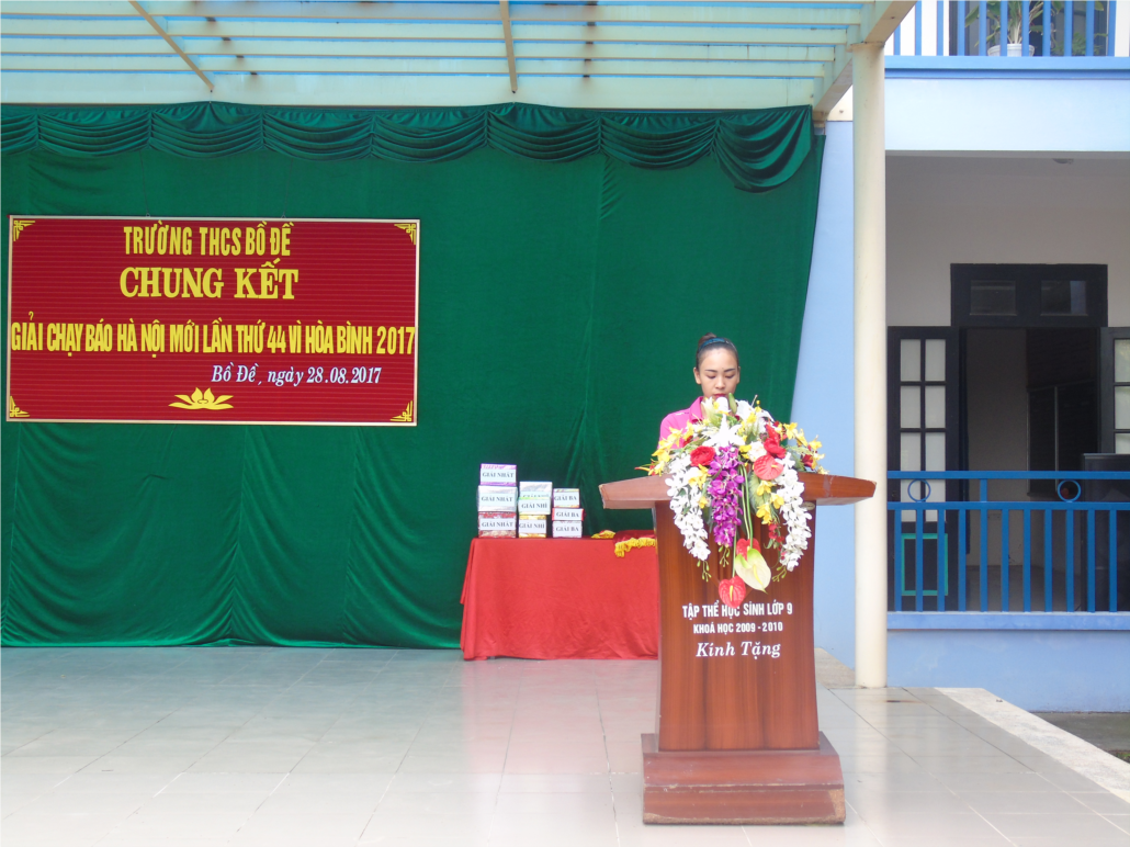 7h30 sáng ngày 28/8/2017, trường THCS Bồ Đề long trọng tổ chức Lễ khai mạc “ Giải chạy báo HNM lần thứ 44 vì hòa bình” với đông đủ CB-GV-NV và học sinh toàn trường.