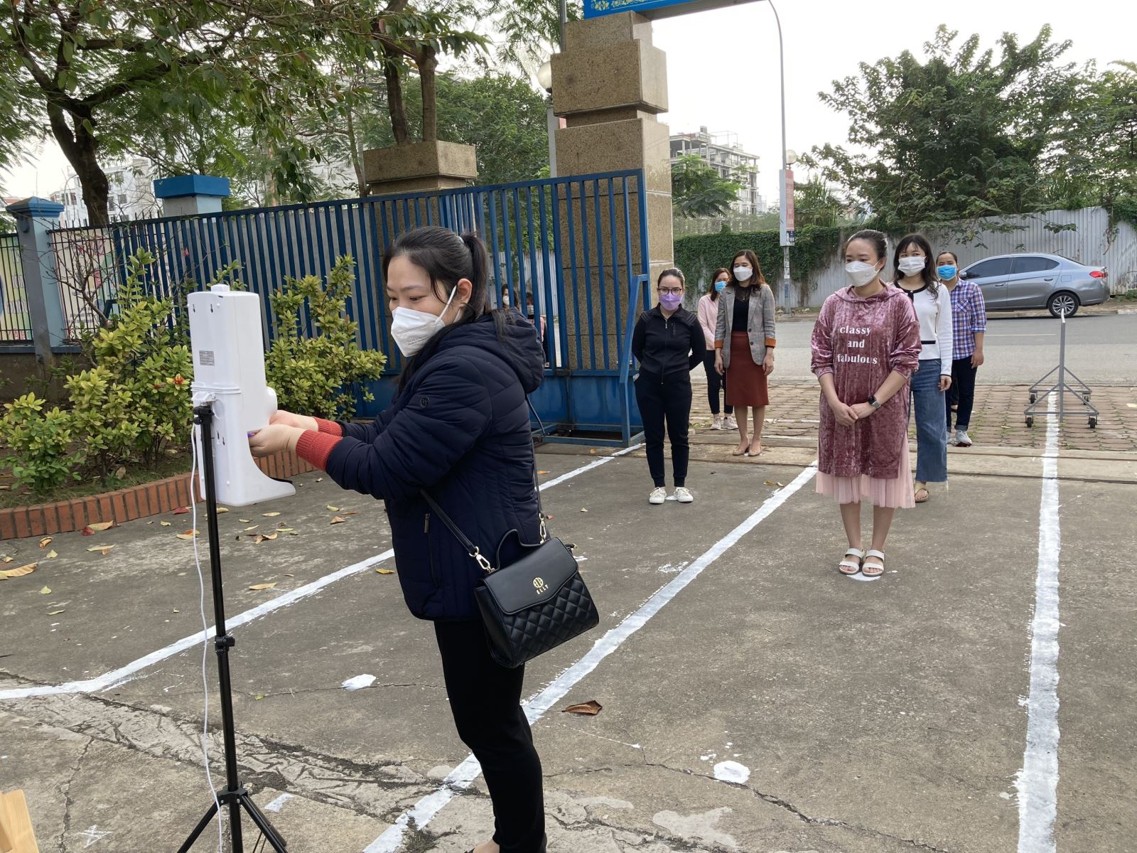 Cụ thể, đầu giờ cán bộ ghi nhiệt độ của các bạn, học sinh đến trường đã đo nhiệt độ hoặc kết quả đo ngoài cổng. Cuối mỗi giờ học tiếp tục báo nhiệt độ cho cán bộ lớp xong mới ra về và ghi vào sổ nhật kí theo dõi sức khỏe. Các lớp đều có sổ Nhật ký, rổ đựng nhiệt kế, khẩu trang dự phòng.Danh sách cập nhật theo ngày và không được thiếu sót. Nhà trường sẽ cập nhật thường xuyên và báo cáo về Phòng GD&ĐT quận hàng ngày theo quy định. Giáo viên chủ nhiệm các lớp phối hợp với cha mẹ học sinh nhắc nhở các con ăn sáng đầy đủ trước khi đến lớp học. Học sinh tuyệt đối không gọi đồ ăn, ship đồ vào nhà trường, vì không đảm bảo an toàn. Khi tan ra về như lúc vào trường, luôn giữ khoảng cách theo quy định. Học sinh về ngay, không tụ tập ở vỉa hè, lòng đường, không la cà.
