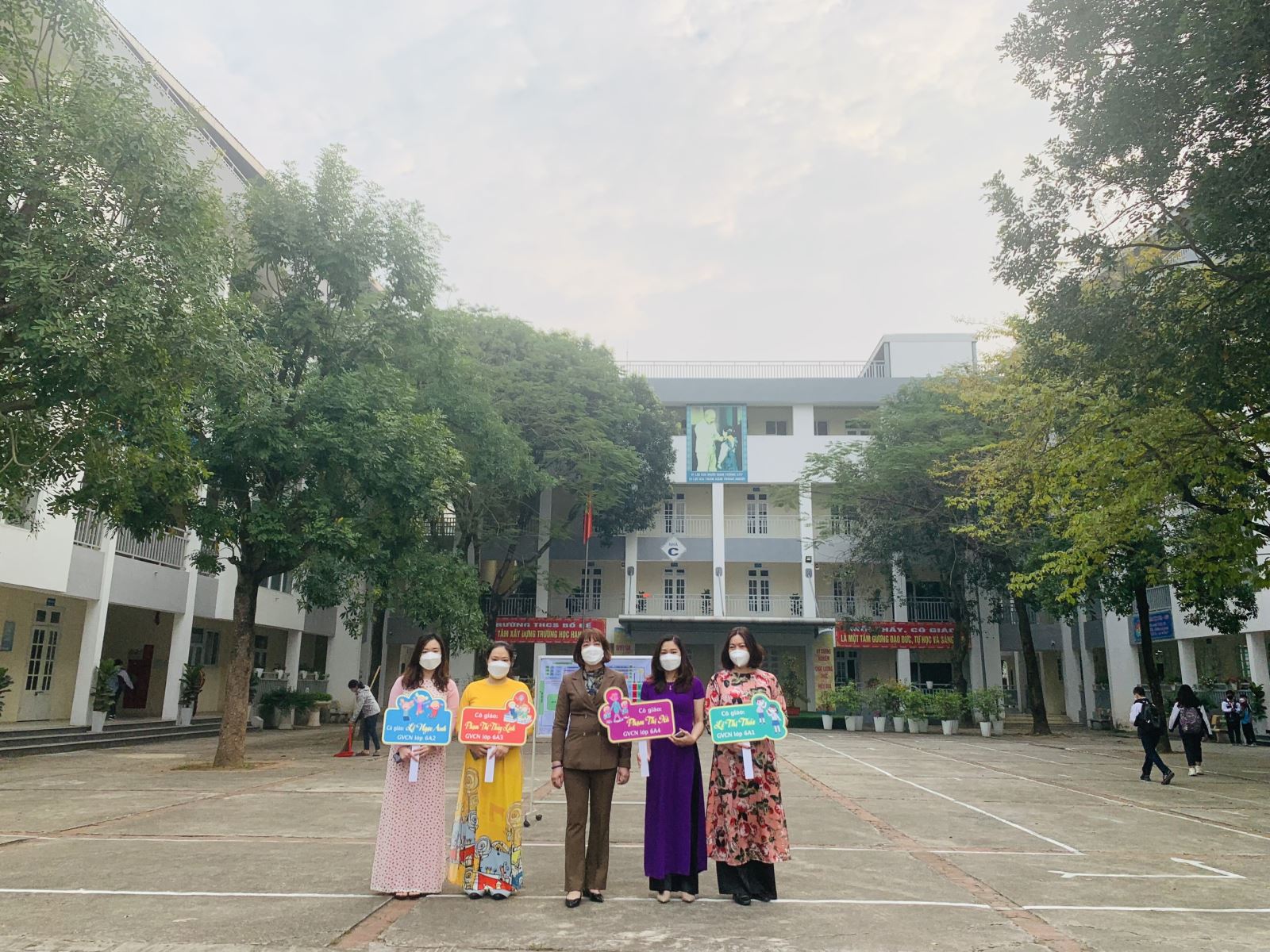 Ngay từ sáng sớm 6/4, Ban Giám hiệu cùng đội ngũ giáo viên, nhân viên đã có mặt đầy đủ để đón học sinh khối 6. Để đảm bảo cho học sinh lớp 6 không bỡ ngỡ, giáo viên chủ nhiệm đã cầm biển đón học sinh của lớp mình và cùng một số phụ huynh đưa các con vào lớp. Dù phải đeo khẩu trang thực hiện nguyên tắc 5K trong phòng, chống dịch bệnh Covid-19 nhưng ánh mắt thầy trò dành cho nhau vẫn ánh lên rạng ngời, tỏa sáng niềm vui. Khi học sinh lớp 6 bước vào lớp học, các con thấy điểm nhấn đầu tiên đó là lớp học được các thầy cô giáo trang trí với sắc màu tươi vui, sinh động; những dòng chữ "Vui đến trường", "Hân hoan chào đón"… vừa khuyến khích động viên, vừa nhắc nhở các em niềm tự hào được đến với ngôi trường thân yêu. Học sinh khối lớp 6 trải qua một học kỳ học trực tuyến, vì thế, tâm trạng chung của cán bộ, giáo viên, nhân viên và phụ huynh, học sinh lúc này là hồ hởi, náo nức như ngày khai giảng đầu năm học. Khi vừa rời ngôi trường Tiểu học, trở thành học sinh Trung học cơ sở cũng không tránh khỏi những bỡ ngỡ. Bên cạnh yêu cầu về thực hiện biện pháp phòng, chống dịch theo đúng hướng dẫn của cơ quan chức năng.