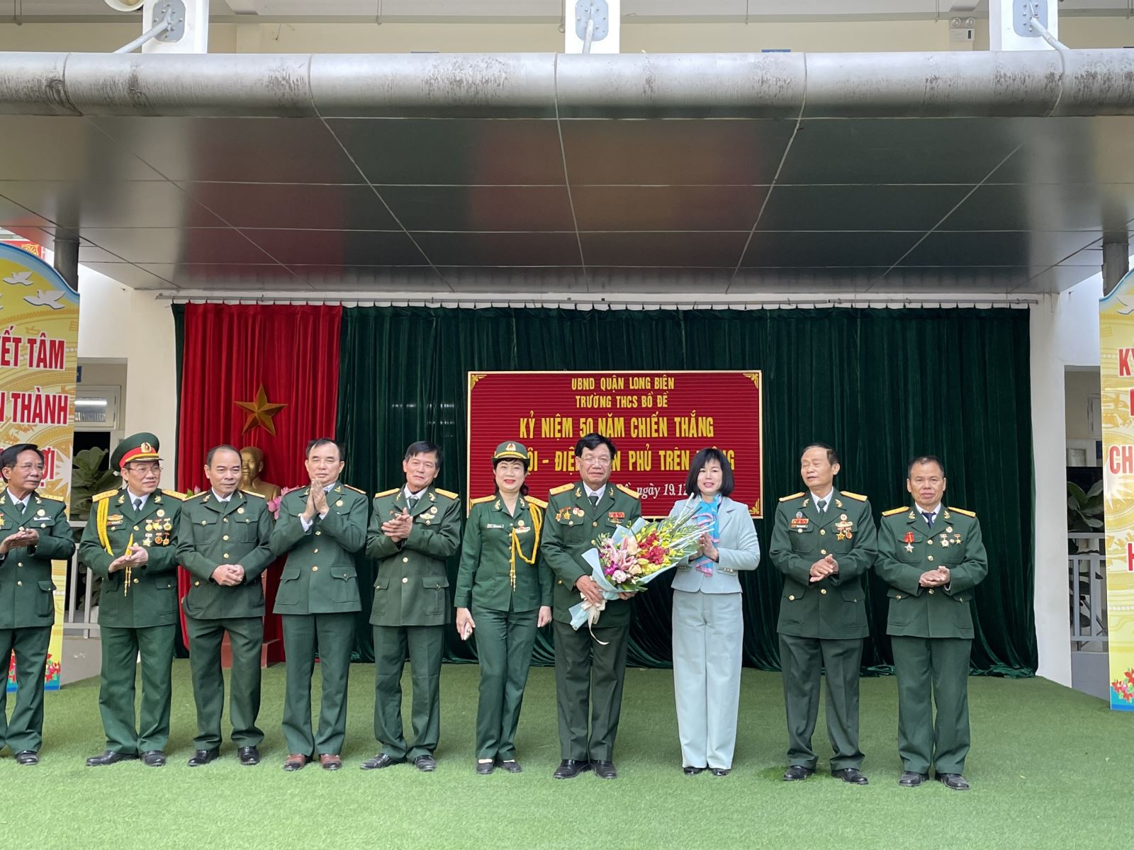 Mở đầu cho chuỗi hoạt động ý nghĩa này, ngày 19/12 nhà trường đã phối hợp cùng với hội cựu chiến binh phường Bồ Đề tổ chức buổi nói chuyện chuyên đề rất bổ ích. Sau phần chào cờ, tuyên bố lí do, giới thiệu đại biểu, các thầy cô giáo và hơn 700 học sinh của nhà trường đã được thưởng thức các tiết mục văn nghệ được chuẩn bị công phu và đặc sắc của hội cựu chiến binh phường. Những lời ca, tiếng hát của hội cựu chiến binh và học sinh khơi gợi lại không khí sôi nổi, hào hùng của những ngày cả nước ra trận. Trong buổi lễ long trọng, đồng chí Trần Mạnh Hùng - Ủy viên Ban chấp hành hội cựu chiến binh phường Bồ Đề xúc động chia sẻ những kỉ niệm sâu sắc của người lính khi tham gia chiến dịch lịch sử Điện Biên Phủ trên không; niềm vui, sự hào hứng khi quân và dân Hà Nội chiến thắng thần tốc và bất ngờ (12 ngày đêm).