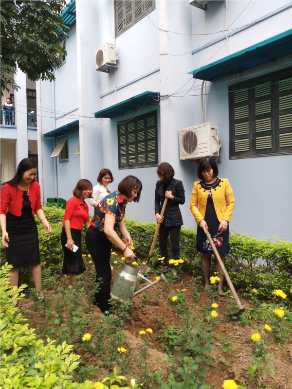 Ngay sau lễ phát động, thầy và trò nhà trường đã hào hứng, tích cực tham gia chăm sóc và trồng mới nhiều cây xanh quanh khu vực sân trường