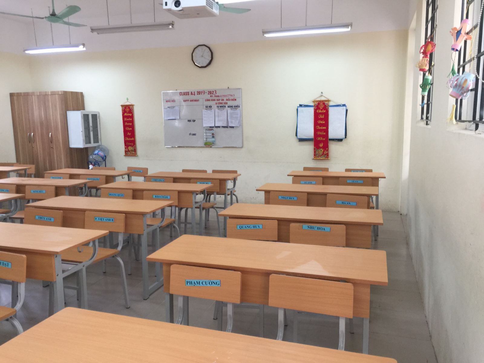 Chiều thứ năm ngày 04/2/2021, nhà trường đã tiến hành tổng vệ sinh và khử khuẩn các khu vực phòng học, phòng làm việc, phòng chức năng, hành lang, khu vệ sinh. Nền nhà, bàn ghế, tay nắm cửa,... được lau bằng chất tẩy rửa chuyên dụng.