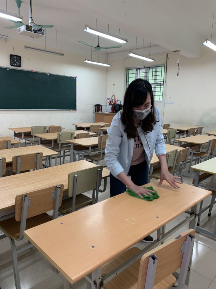 Sáng ngày 7/3/2020, nhà trường đã tiến hành tổng vệ sinh các khu vực phòng học, phòng làm việc, phòng chức năng, hành lang, khu vệ sinh lần thứ 6 (đợt phòng chống dịch bệnh Covid 19). Nền nhà, bàn ghế, tay nắm cửa... được lau bằng chất tẩy rửa chuyên dụng.