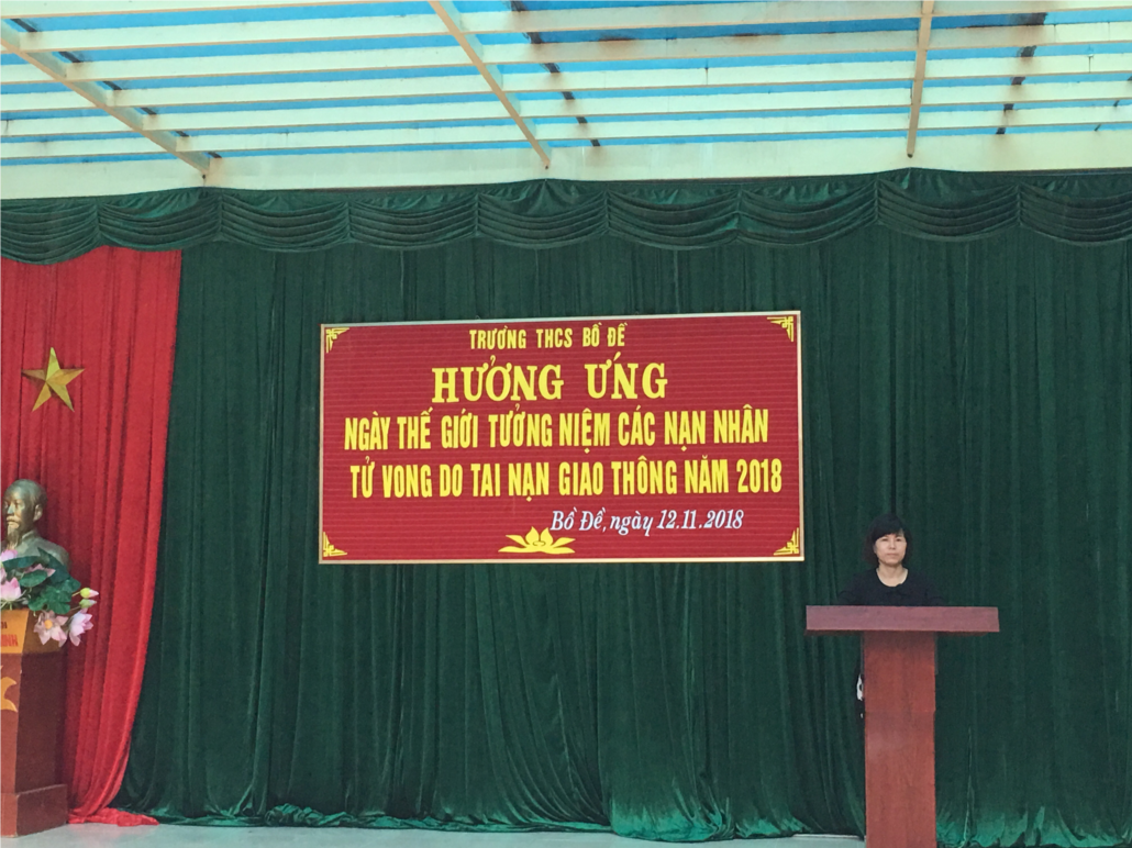 Với thông điệp “Tưởng nhớ người đi - Vì người ở lại” và “Tính mạng con người là trên hết”, Sáng thứ hai, ngày 12-11-2018 trường THCS Bồ Đề tổ chức các hoạt động hưởng ứng “Ngày thế giới tưởng niệm các nạn nhân tử vong do tai nạn giao thông”.