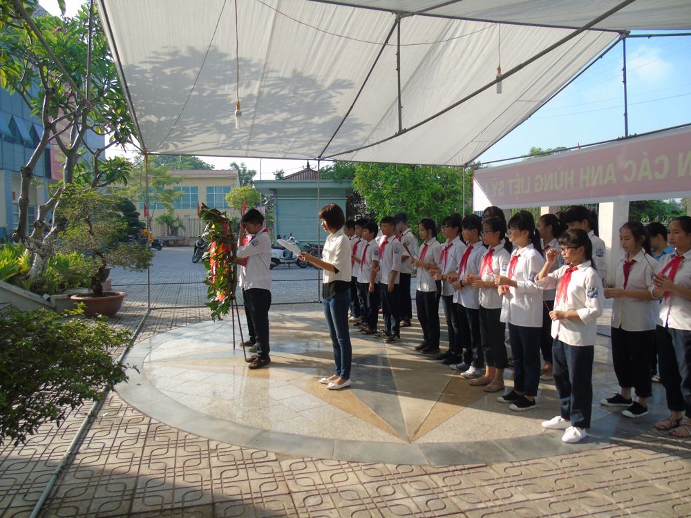 Tiếp đến là các Giáo viên và học sinh lên thắp nhang để tưởng niệm các anh hùng liệt sĩ